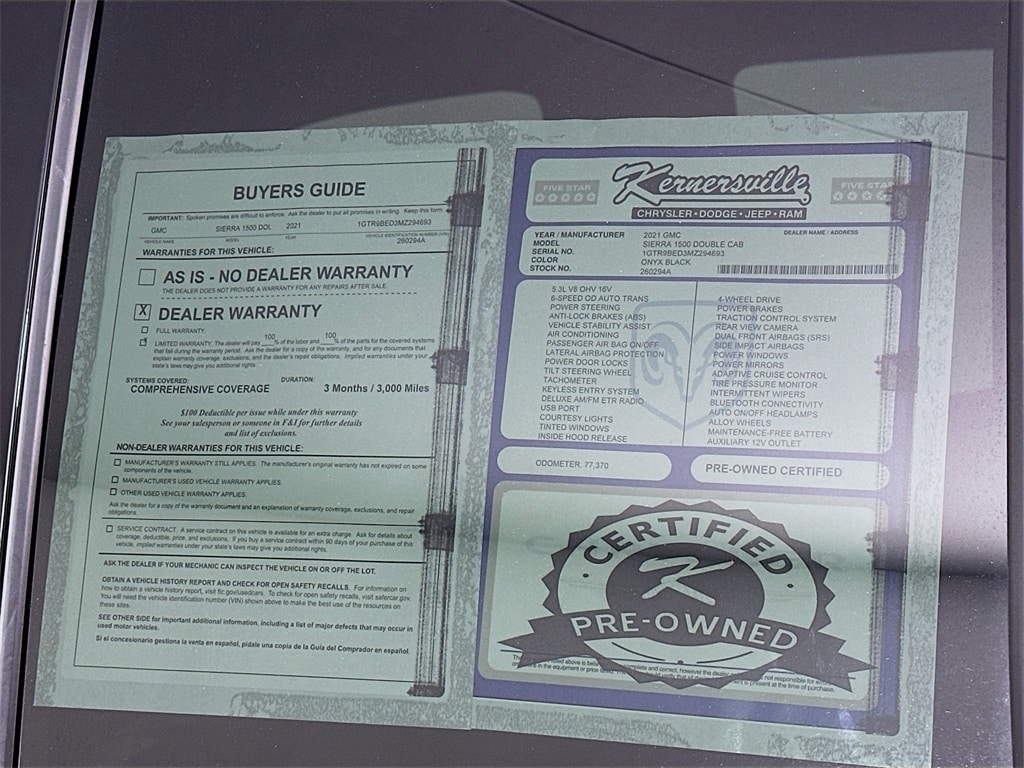 When calling or emailing, please reference stock number 260294A.MORE ABOUT THIS 2021 GMC Sierra 1500 SLE Truck Extended CabCertified Pre Owned! Clean Carfax! One Owner!