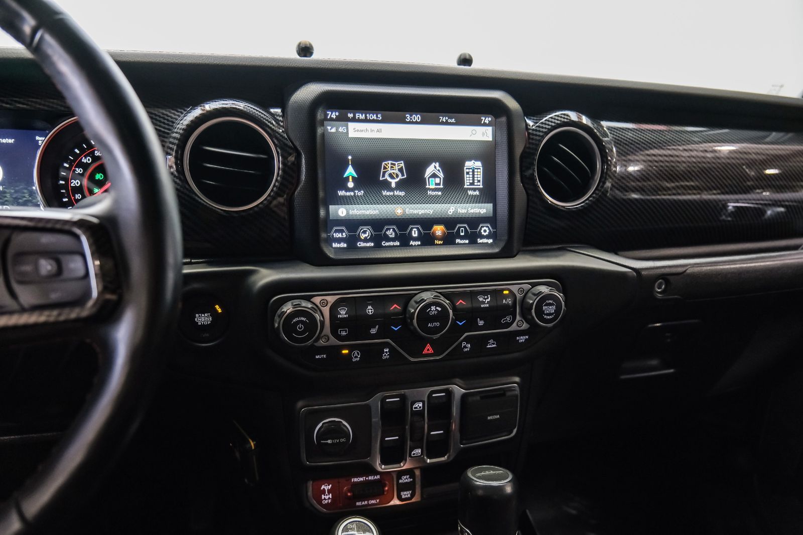 Includes UConnect 4C NAV with 8.4-in. touch-screen display, 4G Wi-Fi hotspot, SiriusXM Guardian, SiriusXM Travel Link, Alpine premium audio system, HD radio, GPS navigation, off-road information pages, and auto-dimming rearview mirror.