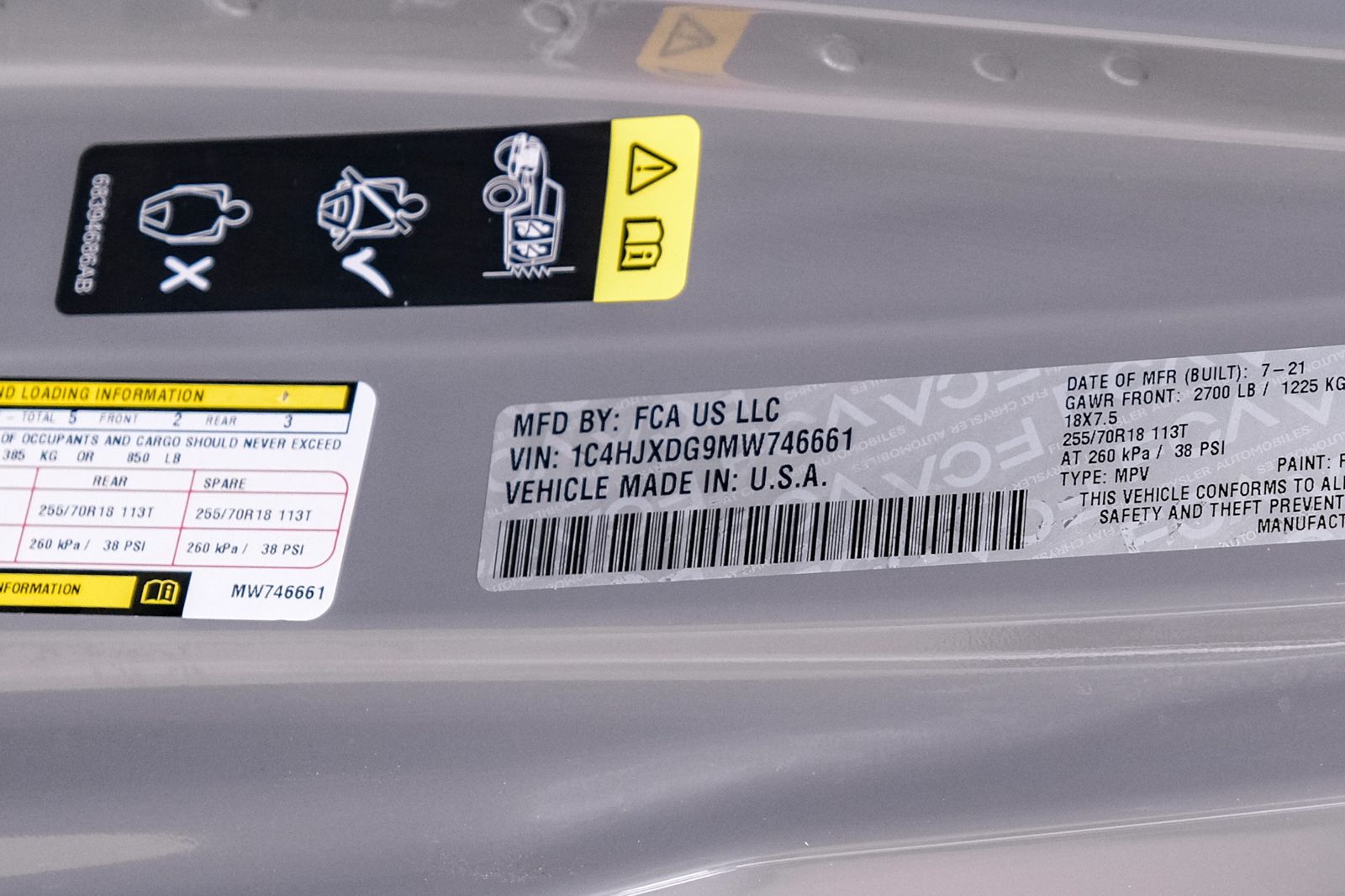 | Year: | 2021 | VIN: | 1C4HJXDG9MW746661 |