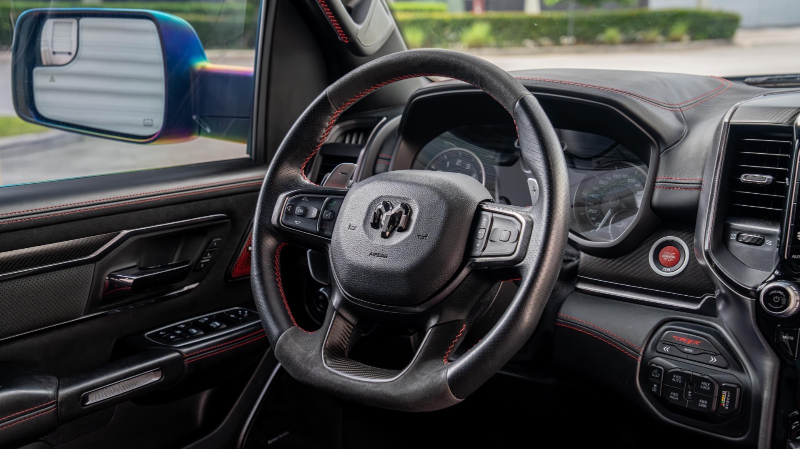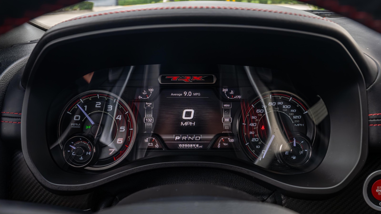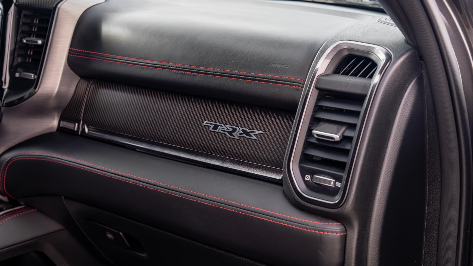 Inside, the TRX delivers premium comfort and cutting-edge technology, including a 12-inch Uconnect® touchscreen, performance data pages, available carbon-fiber accents, and Harman Kardon® premium audio.