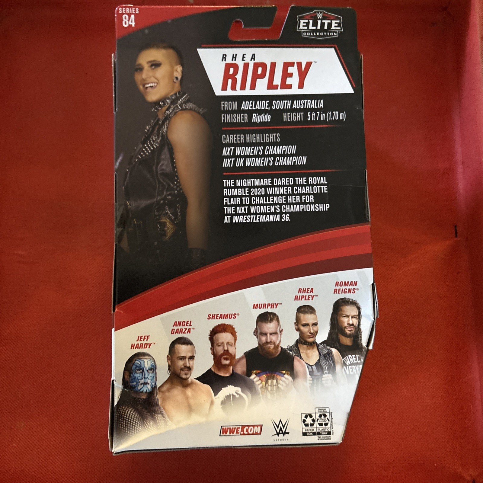 The 2021 WWE Elite Collection Series 84 Action Figure of Rhea Ripley is a highly detailed and authentic representation of the wrestling superstar. This action figure, manufactured by Mattel, features Rhea Ripley in her WWE Elite Collection attire with clothes included. The figure is suitable for ages 8 and up, making it a great addition to any wrestling fan's collection. Packaged in its original packaging, this action figure is a must-have for fans of the WWE franchise and Rhea Ripley. Some box wear. See detailed photos. SOLD AS IS. NO RETURNS. NO REFUNDS