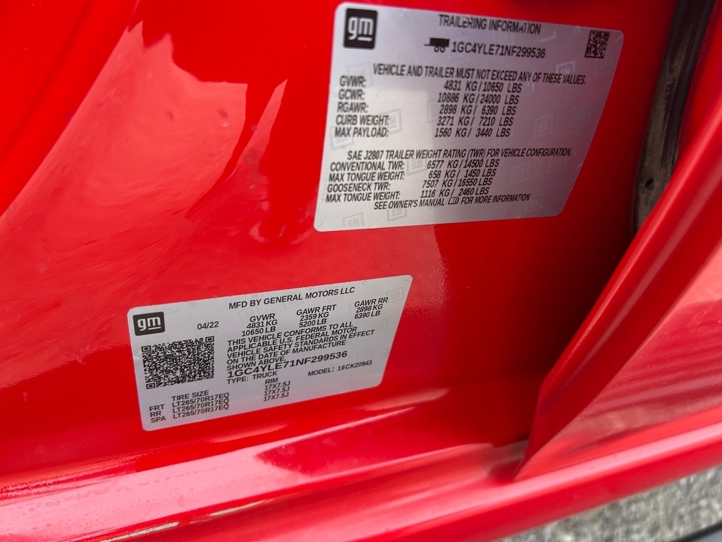 - VIN Number: 1GC4YLE71NF299536