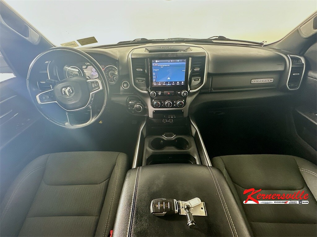 This Clean CarFax 2022 RAM 1500 BIG HORN 4WD Crew cab truck has a HEMI 5.7L V8 Multi Displacement VVT engine, automatic transmission, cloth seats, Certified Pre-Owned, navigation system, rearview camera, push start, remote start, front power seats, steering wheel controls, auxiliary input, USB port, Bluetooth, towing package, cruise control, keyless entry, and 19,899 miles. It is also equipped with 275/55R20 Tires, Uconnect 5 Nav with 8 Inch Touch Screen Display, 23 Gallon Fuel Tank, Power Mirrors, Hill start assist, and TheftDeterrent System.