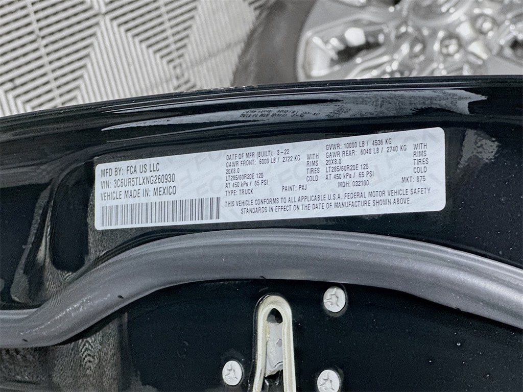 This One Owner Clean CarFax 2022 RAM 2500 LIMITED 4WD Mega cab truck has a Cummins 6.7L I6 Turbodiesel engine, automatic transmission, leather seats, Certified Pre-Owned, navigation system, rear-view camera, power side steps, push start, remote start, heated steering wheel, heated seats, ventilated seats, front power seats, steering wheel controls, auxiliary input, USB port, Bluetooth, spray in bedliner, cruise control, and 64,090 miles. It is also equipped with 285/60R20 Tires, Bed cover, Memory seats, SurroundView Camera System, 17 Speaker Harman Kardon Premium Sound, LaneKeep Assist, Digital Rearview Mirror, Rear PowerSliding Window, 31Gallon Fuel Tank, A/C with DualZone Auto Temperature Control, 9 Alpine Speakers with Subwoofer, Uconnect 5 Nav with 12.0Inch Touch Screen Display, and Sentry Key Theft Deterrent System.