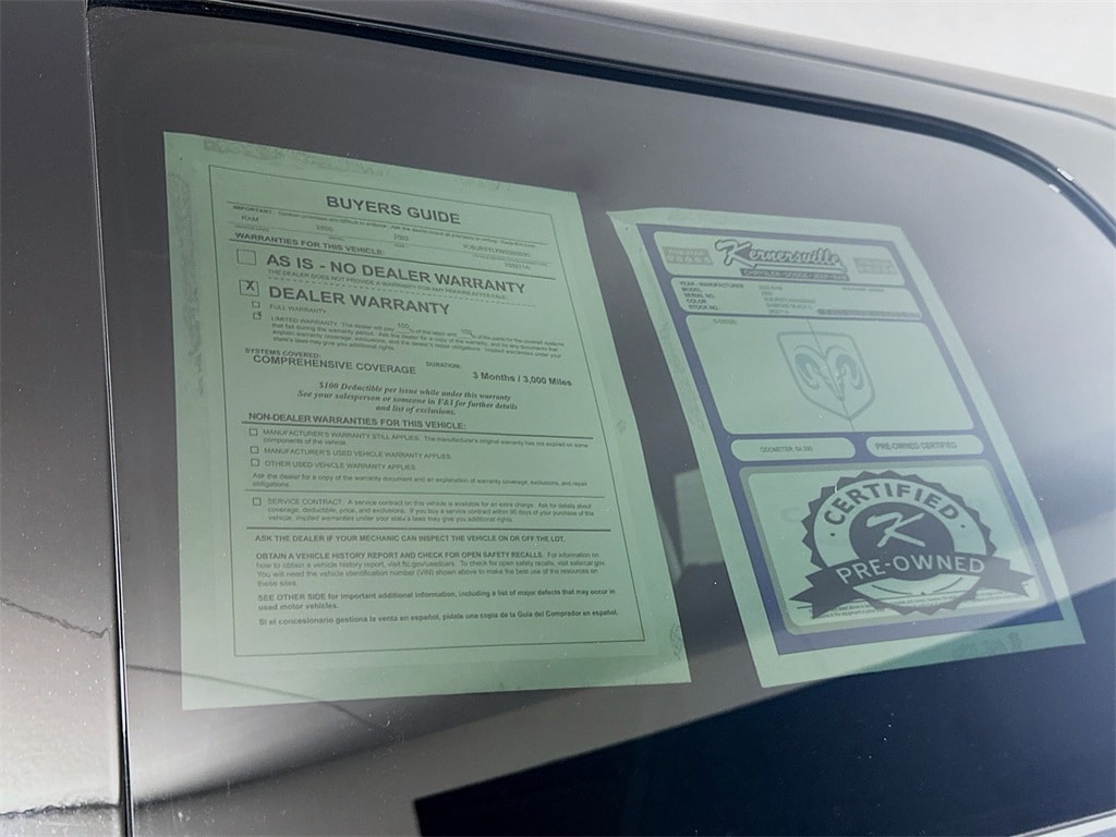 For even more peace of mind, add the 3-month/3,000-Mile Comprehensive Warranty, 1 12-12 Limited Tire and Wheel, 2 Roadside Assistance, 3 Trip interruption insurance, 4 CARFAX® Vehicle History Report™, 5 Major savings on extended protections, 6 $500 Trade in Credit when trading car back to Kernersville CDJR, 7 Plus, we offer something you won't find from any other manufacturer: Certified Warranty Upgrades.