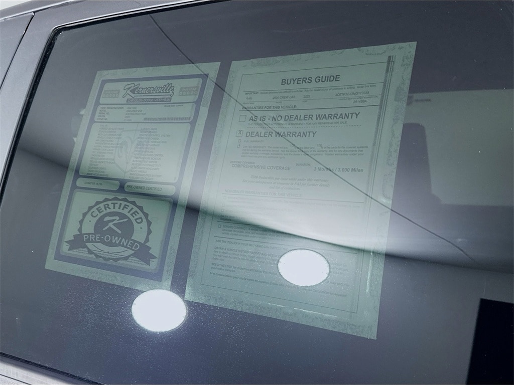 For even more peace of mind, add the 3-month/3,000-Mile Comprehensive Warranty, 1 12-12 Limited Tire and Wheel, 2 Roadside Assistance, 3 Trip interruption insurance, 4 CARFAX® Vehicle History Report™, 5 Major savings on extended protections, 6 $500 Trade in Credit when trading car back to Kernersville CDJR, 7 Plus, we offer something you won't find from any other manufacturer: Certified Warranty Upgrades.