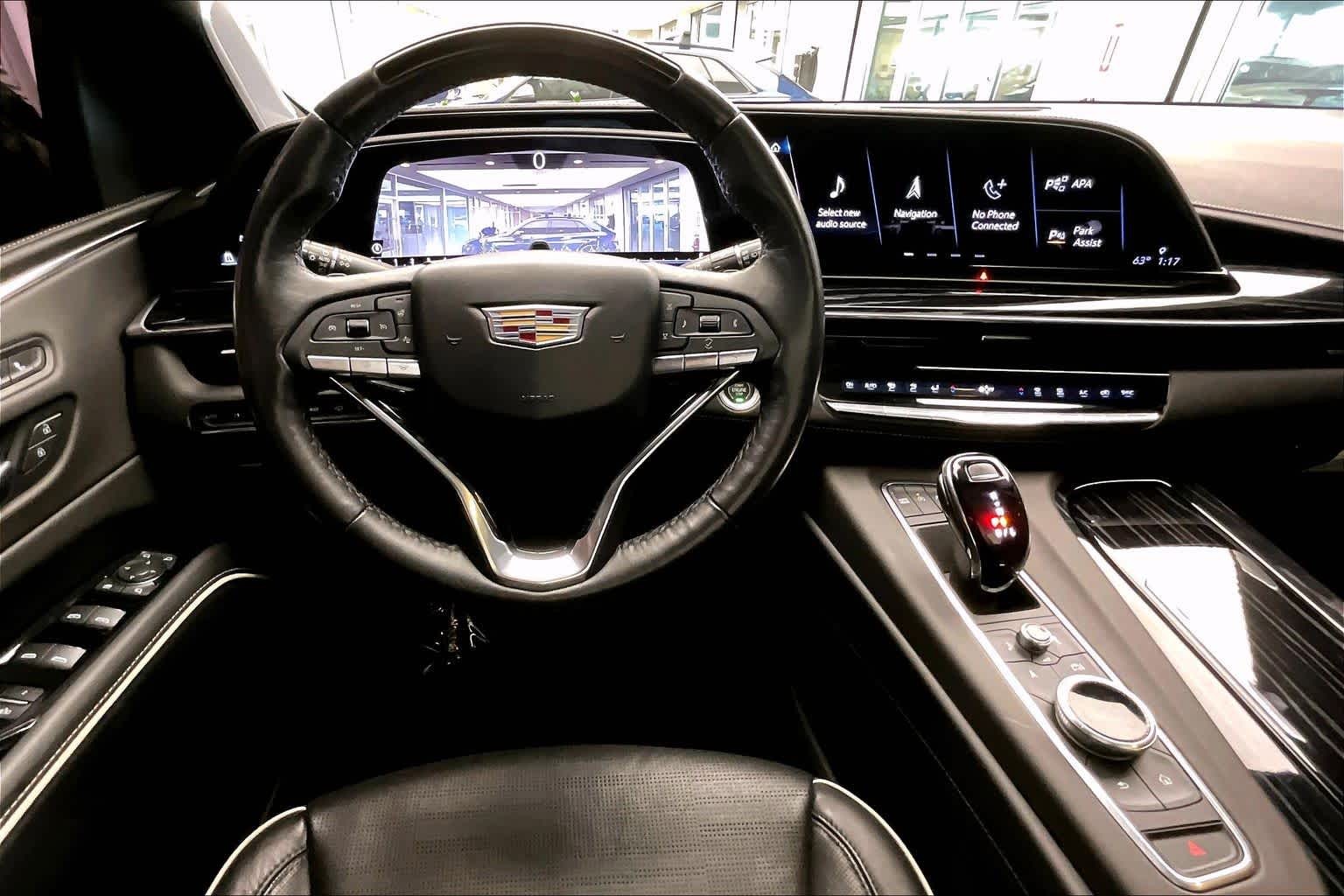AUDIO SYSTEM FEATURE, AKG STUDIO REFERENCE 36-SPEAKER SYSTEM includes 3D Surround, Navigation Rendering and Front Passenger Volume Control, TOURING PACKAGE includes (AF7) front and rear, soft-close doors, (B7G) illuminating sill plates and (F47) Air Ride Adaptive suspension, SUPER CRUISE a hands-free driver assistance system for use on compatible roads (Beginning with start of production through October 2, 2022, vehicles will be forced to include either (00U) Not Equipped with Super Cruise and/or (02O) Not Equipped with Super Cruise, which will remove Super Cruise and its content. See dealer for details or the window label for the features on a specific vehicle. Always pay attention while driving and when using Super Cruise. Do not use a hand-held device. Visit cadillac.com/supercruise for compatible roads and full details.), ASSIST STEPS, POWER-RETRACTABLE WITH PERIMETER LIGHTING, SUSPENSION, AIR RIDE ADAPTIVE, OLED INFOTAINMENT EXPERIENCE WITH NAVIGATION AM/FM/SiriusXM with 360L with 16.9 diagonal color information display (displays and controls navigation, music and all features and functions of the vehicle), personalized profiles for each drivers settings, Natural Voice Recognition, Phone Integration for Wireless Apple CarPlay®/Wireless Android Auto® capability for compatible phone, Connected Apps and Teen Driver (STD), ENGINE, 6.2L V8 WITH DYNAMIC FUEL MANAGEMENT Direct Injection and Variable Valve Timing, includes aluminum block construction (420 hp [313.2 kW] @ 5600 rpm, 460 lb-ft of torque [623.7 Nm] @ 4100 rpm) (STD), TRANSMISSION, 10-SPEED AUTOMATIC electronically controlled with overdrive, tow/haul mode and tap up/tap down shifting (STD), WINDOW CONTROL, ALL WINDOWS, EXPRESS-UP/DOWN (auto Express-Up/Down via key fob) (Beginning with start of production, vehicles will be forced to include (00N) Not Equipped with 2nd Row Express-Up Window Control, which removes only 2nd Row Express-Up Window Control functionality. See dealer for details or the window label for the features on a specific vehicle.).