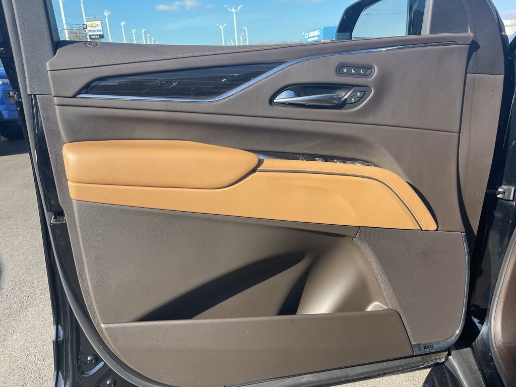 THIS VEHICLE INCLUDES THE FOLLOWING FEATURES AND OPTIONS: Preferred Equipment Group 1SC (Adaptive Cruise Control, AKG Studio 19-Speaker Audio System, Automatic Seat Belt Tightening, Body-Color Door Handles, Door Lock & Latch Shields, Electronic Limited-Slip Differential, Enhanced Automatic Emergency Braking, Enhanced Automatic Parking Assist, Glass Breakage Sensor, Heated & Ventilated Driver & Front Passenger Seats, Hitch Guidance w/Hitch View, Integrated Trailer Brake Controller, Power Panoramic Tilt-Sliding Sunroof, Rear Camera Mirror, Rear Camera Mirror Washer, Rear Cross Traffic Alert, Reconfigurable Full-Color Head-Up Display, Reverse Automatic Braking, Running Board Assist Steps, Smart Trailer Integration Indicator, Theft-Deterrent Alarm System, Trailer Side Blind Zone Alert, Vehicle Inclination Sensor, and Vehicle Interior Movement Sensor), Touring Package (Air Ride Adaptive Suspension, Illuminating Front & Rear Sill Plates, and Soft Closing Front & Rear Doors), 16.9 Diagonal OLED Infotainment Screen, 19 Speakers, 2-Presets Memory For Driver Seat Adjuster, 3 Years of OnStar & Connected Services Plan, 3.23 Axle Ratio, 3rd row seats: split-bench, 4-Way Power Driver Lumbar Seat Adjuster, 4-Way Power Front Passenger Lumbar Seat Adjuster, 4-Wheel Disc Brakes, 8-Way Power Driver Seat Adjuster, 8-Way Power Front Passenger Seat Adjuster, ABS brakes, Adaptive suspension, Air Conditioning, AKG Studio Reference 36-Speaker Audio System, Alloy wheels, AM/FM radio: SiriusXM with 360L, Apple CarPlay/Android Auto, Audio memory, Auto High-beam Headlights, Auto tilt-away steering wheel, Auto-dimming door mirrors, Auto-dimming Rear-View mirror, Automatic temperature control, Brake assist, Bumpers: body-color, Compass, Cruise Control, Delay-off headlights, Driver door bin, Driver vanity mirror, Dual front impact airbags, Dual front side impact airbags, Electronic Stability Control, Emergency communication system: OnStar and Cadillac connected services capable, Exterior Parking Camera Rear, Four wheel independent suspension, Front anti-roll bar, Front Bucket Seats, Front Center Armrest w/Storage, Front dual zone A/C, Front License Plate Bracket, Front reading lights, Fully automatic headlights, Garage door transmitter, HD Radio, Heads-Up Display, Heated door mirrors, Heated Driver & Front Passenger Seats, Heated front seats, Heated rear seats, Heated steering wheel, Illuminated entry, Leather Seating Surfaces w/Precision Perf Inserts, Low tire pressure warning, Magnetic Ride Control Suspension, Memory seat, Navigation System, Not Equipped w/2nd Row Express-Up Window Control, Occupant sensing airbag, Outside temperature display, Overhead airbag, Overhead console, Panic alarm, Passenger door bin, Passenger vanity mirror, Power door mirrors, Power driver seat, Power Liftgate, Power moonroof, Power passenger seat, Power steering, Power windows, Radio data system, Radio: AM/FM w/Navigation, Rain sensing wipers, Rear air conditioning, Rear anti-roll bar, Rear reading lights, Rear window defroster, Rear window wiper, Remote keyless entry, Security system, SiriusXM w/360L, Split folding rear seat, Spoiler, Steering wheel memory, Steering wheel mounted audio controls, Super Cruise, Tachometer, Teen Driver, Telescoping steering wheel, Tilt steering wheel, Traction control, Trip computer, Turn signal indicator mirrors, Variably intermittent wipers, Ventilated front seats, Voltmeter, Wheels: 22 12-Spoke Polished Alloy/Dark Android Finish, and Wireless Apple CarPlay/Wireless Android Auto.
