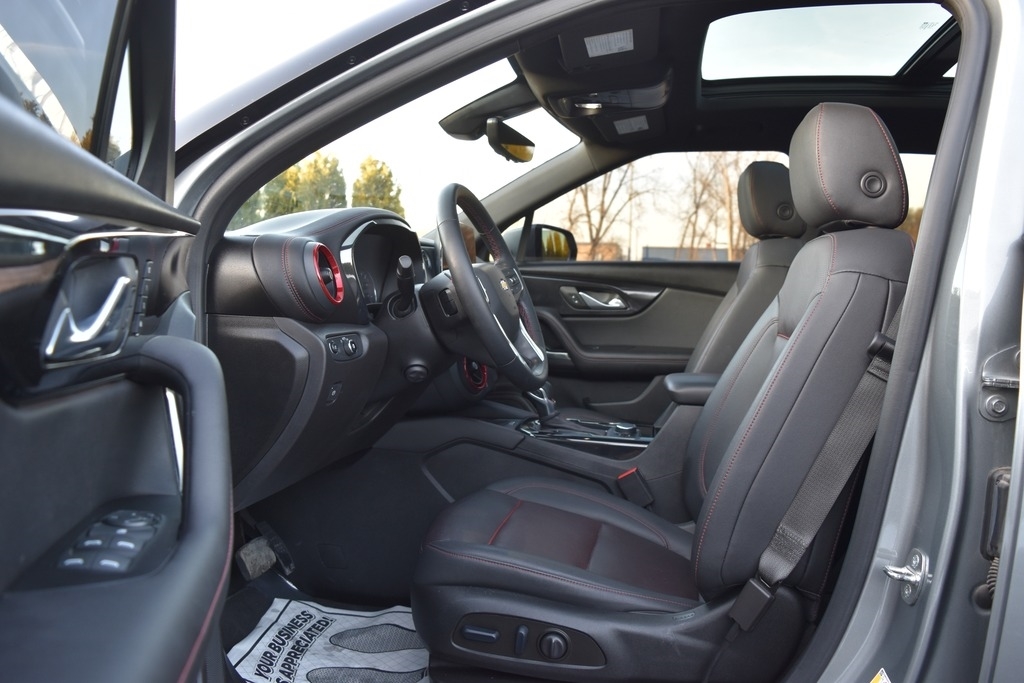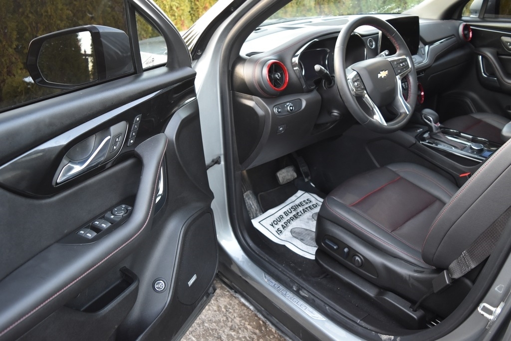 HAND SELECTED (CLEAR TITLE-FACTORY WARRANTY) / CALL & MAKE OFFER ANYTIME............................SHARP STERLING GRAY METALLIC EXTERIOR MATCHED WITH A CLEAN BLACK (HEATED & COOLED FRONT , HEATED REAR) LEATHER INTERIOR SEATING ON THIS 2023 CHEVROLET BLAZER RS - EDITION(RALLY SPORT)......................WITH THE STRONG & PEPPY 3.6 LITER V6 ENGINE.......................(WITH 308 HORSEPOWER & 270 LBS FT TORQUE).........................AUTO OFF-START GAS SAVING FEATURE..................................SMOOTH SHIFTING AUTOMATIC TRANSMISSION / TRACTION CONTROL.............................FWD / 2WD / FRONT WHEEL DRIVE SYSTEM.........................................TRACTION CONTROL.............................VARIABLE DRIVING SELECT MODES............................................19,779 (ONE OWNER) MILES............................3.6L RS-EDITION(NICELY OPTIONED)...................................RALLY SPORT..............................COLD A/C.........................FULLY TINTED WINDOWS...........................DUAL PANE PANORAMIC SUNROOF / VISTA ROOF WITH POWER SHADE OPTION...............................FULL LEATHER SEATING.................................DUAL FRONT POWER SEATS............................DUAL FRONT HEATED LEATHER SEATS...........................DUAL FRONT COOLED SEATS................................REAR HEATED SEATS................................. FLIP-DOWN REAR SEATS / FOR MORE STORAGE ROOM / SEE PICTURES .........................MEDIA INFORMATION TOUCH SCREEN.............................ON STAR SERVICES...................***COLORED VOICE ACTIVATED NAVIGATION MAPS SYSTEM****...................SYNC SERVICES...................BLUETOOTH..............................ONSTAR SERVICES..............................LEATHER WRAPPED STEERING WHEEL.......................STEERING WHEEL CONTROLS.......................HEATED SIDE MIRRORS..........................HEATED STEERING WHEEL.........................POWER TEELSCOPIC STEERING WHEEL.........................BLIS DETECTION / BLIND SPOT ALERT SIDE BLINKING MIRRORS..............................LANE CHANGE ALERT SYSTEM.........................FRONT COLLISION ALERT SYSTEM..................................REAR VIEW BACK UP CAMERA SYSTEM..........................FRONT VIEW CAMERA SYSTEM........................360 DEGREES ALL AROUND IMAGING VIA MEDIA SCREEN....................................SYNC SERVICES....................AM/FM/XM/USB/AUX...........................PREMIUM BOSE AUDIO SPEAKER SYSTEM.............................WiFi HOTSPOT LINK.....................ANDROID AUTO CAPABLE.........................APPLE CARPLAY CAPABLE......................PUSH BUTTON START ON/OFF..............................FACTORY REMOTE START...................................