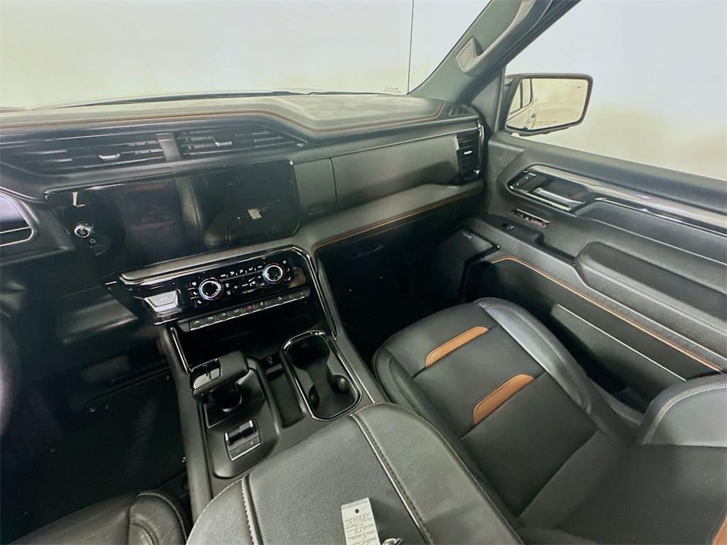 This 2023 GMC Sierra 1500 AT4 Crew Cab 4x4 delivers exceptional diesel efficiency, off road capability, and premium technology in a bold and rugged full size truck. Powered by the Duramax 3.0L turbo diesel engine paired with a smooth 10 speed automatic transmission, this Sierra provides strong torque, confident towing, and excellent highway driving manners. Capability features include a two speed AutoTrac transfer case, off road suspension with lift, skid plates, hill descent control, trailer sway control, integrated trailer brake controller, and the ProGrade Trailering System to support demanding jobs and weekend adventures. Advanced safety and driver assistance technology includes GMC Pro Safety with automatic emergency braking, forward collision alert, lane keep assist with lane departure warning, IntelliBeam automatic high beams, following distance indicator, HD surround vision, rear camera mirror, and adaptive cruise control. Inside, the AT4 cabin offers a refined yet rugged environment with heated and ventilated front seats, heated rear seats, a heated steering wheel, driver memory settings, premium floor liners, a large touchscreen infotainment system with wireless Apple CarPlay and Android Auto, Bose premium sound system, head up display, and a power sliding rear window. Exterior highlights include LED lighting, power folding heated mirrors, spray in bedliner with AT4 logo, and the versatile GMC MultiPro tailgate. Backed by Certified Pre Owned status and a One Owner history, this Sierra AT4 is a standout choice for drivers who want diesel capability with premium comfort and advanced technology.