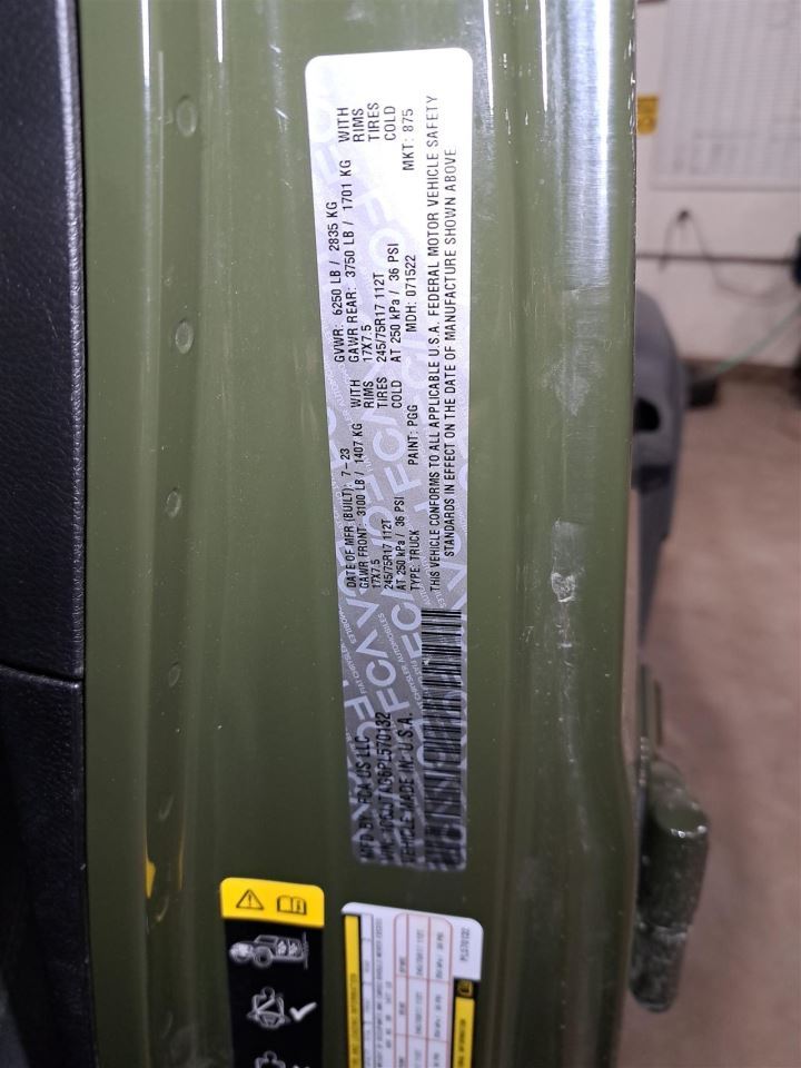 2023 Gladiator Right Passenger Side Rear Door Assembly Color: Green Pgg