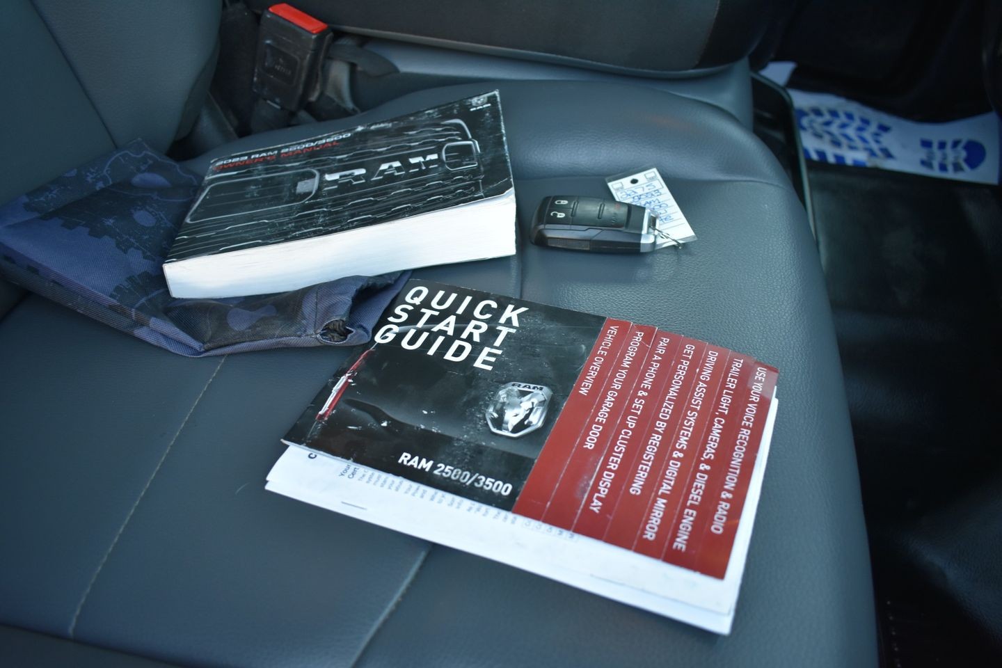 You are looking at a 2023 Dodge Ram 2500 Crew Cab 4x4. It is powered with a 6.4L HEMI V8 and automatic transmission. It is equipped with power trailer mirrors, power windows, power locks, tilt, cruise, receiver hitch, spray in bed liner, factory gooseneck hitch, and am/fm radio . Also included are the owner's manuals and one keyless remote.