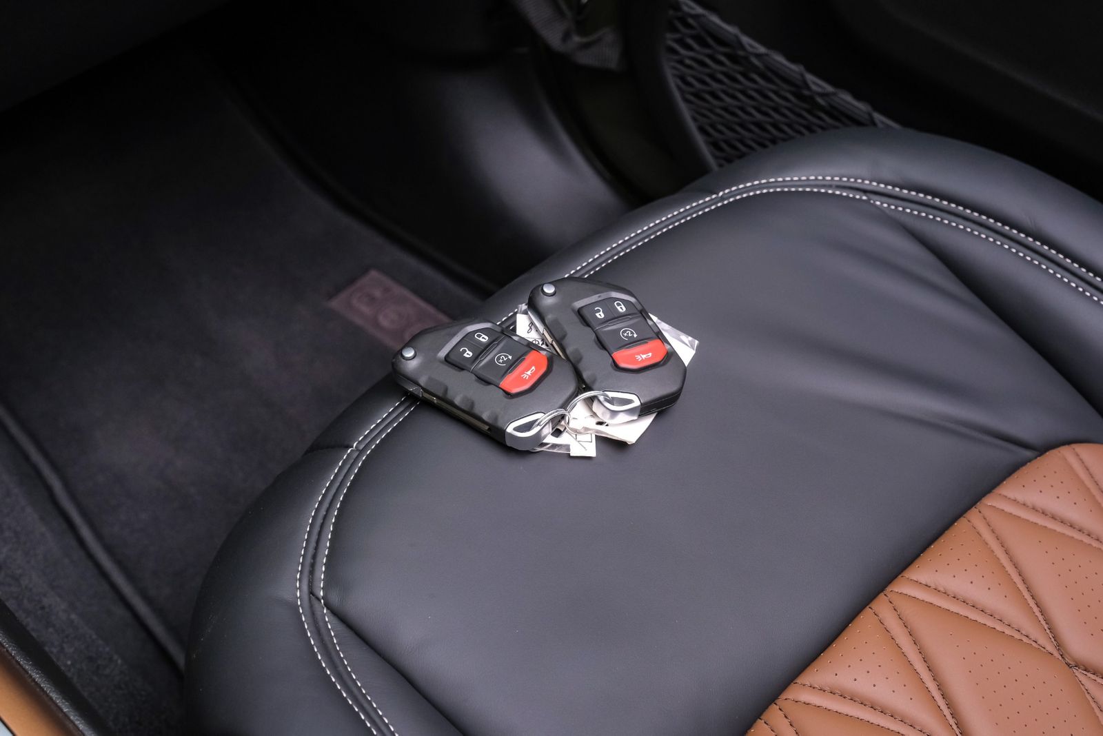 - Upholstery: leather-trimmed