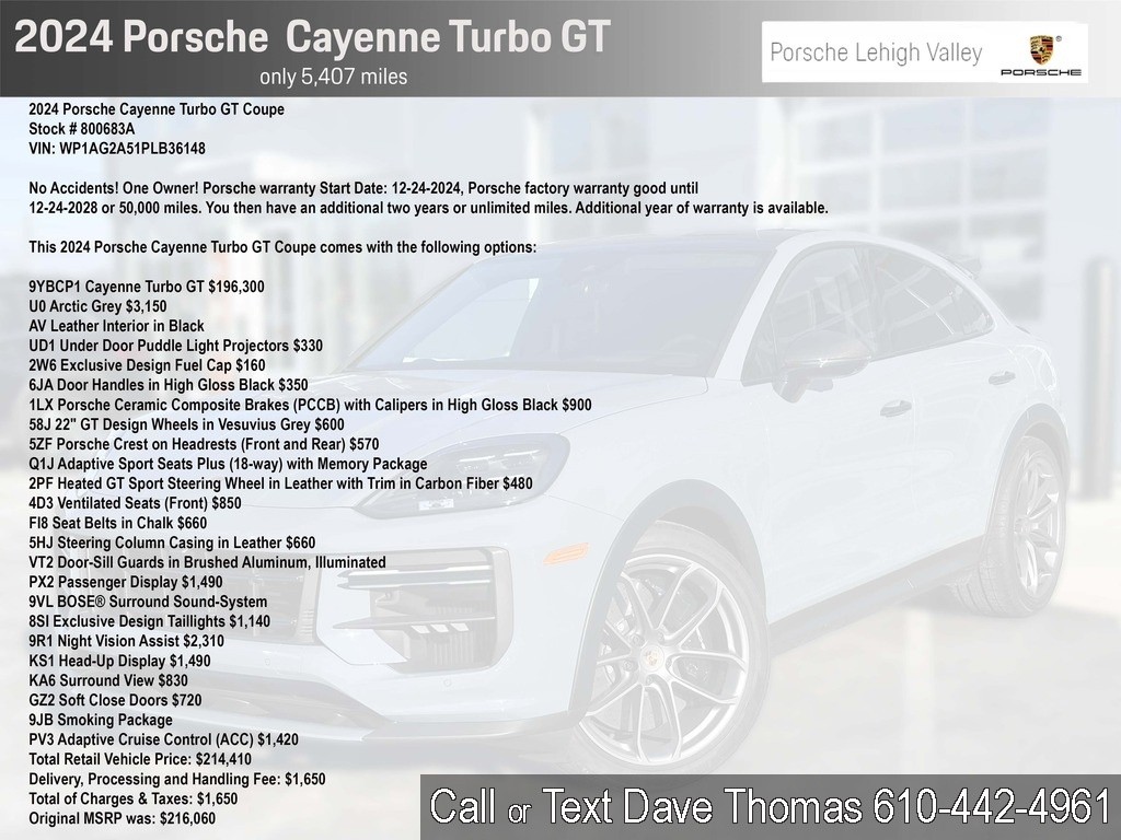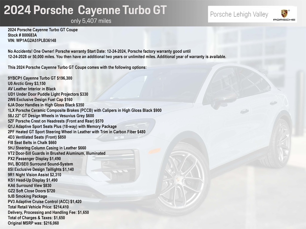 This 2024 Porsche Cayenne Turbo GT Coupe comes with the following options: