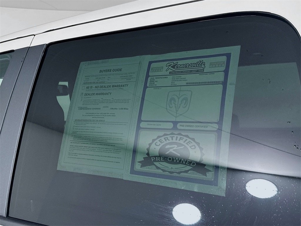 When calling or emailing, please reference stock number 251353A.MORE ABOUT THIS 2024 Ram 3500 Laramie Truck Mega Cab Certified Pre Owned! One Owner Carfax! Laramie Night Edition! Mega Cab 4X4! 6.7L Cummins HO Turbo Diesel Engine! Aisin Heavy Duty Automatic Transmission! Electronic Shift On The Fly Four Wheel Drive! Trailer Brake Controller! Blind Spot And Cross Path Detection With Trailer Coverage! ParkView Rear Backup Camera! ParkSense Front And Rear Park Assist! Remote Start System! Power Sunroof! Power Deployable Side Steps! Spray In Bedliner! LED Headlamps And Tail Lamps! Power Heat Fold Telescoping Memory Mirrors! Ventilated And Heated Front Seats! Heated Steering Wheel! Dual Zone Automatic Climate Control! Memory Driver Seat Mirrors And Pedals! Leather Trimmed Bucket Seats! Uconnect Navigation With Large Touchscreen Display! Apple CarPlay! Android Auto! Alpine Premium Audio System! This 2024 Ram 3500 Laramie Night Mega Cab 4X4 is a heavy duty diesel truck engineered for serious towing, premium comfort, and modern technology. Powered by the high output 6.7L Cummins turbo diesel engine paired with a robust Aisin automatic transmission, this Ram delivers exceptional torque, smooth power delivery, and confident performance for demanding work or long distance travel. Four wheel drive capability, trailer brake control, advanced stability systems, and blind spot monitoring with trailer detection help provide confidence whether hauling equipment or navigating highways. The Mega Cab interior offers outstanding space and luxury with leather trimmed bucket seating, heated and ventilated front seats, a heated steering wheel, dual zone automatic climate control, and memory settings for the driver seat, mirrors, and pedals. Technology features include a large Uconnect touchscreen with built in navigation, Apple CarPlay, Android Auto, Bluetooth connectivity, and a premium Alpine sound system. Exterior highlights such as the Night Edition appearance, LED lighting, power deployable side steps, power sunroof, spray in bedliner, and power telescoping mirrors complete the package. With its Certified Pre Owned status and One Owner history, this Ram 3500 Laramie Mega Cab is an exceptional choice for buyers seeking uncompromising diesel capability paired with refined comfort and advanced features. Kernersville Chrysler Dodge Jeep Ram is the LARGEST truck dealer in the Southeast for two years in a row. We have the largest selection of trucks and over 1900 vehicles in stock at all times. We aim to truly be the lowest priced in the market and we do so by price checking our inventory every day and dropping our price to remain in the TOP 3 LOWEST PRICED. Shop at the most convenient dealer in the USA, available online! Shop at Kernersville Chrysler Dodge Jeep Ram! Hablamos Espanol - llame hoy.