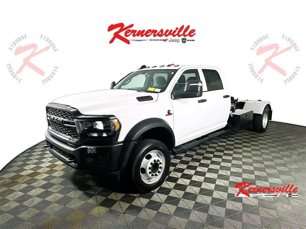 When calling or emailing, please reference stock number Y0272.MORE ABOUT THIS 2024 Ram 5500HD Tradesman Truck Crew Cab LB One Owner Carfax! Tradesman Trim! Crew Cab 4X4! 6.7L Cummins Turbo Diesel Engine! Aisin Heavy Duty Automatic Transmission! Manual Shift On The Fly Transfer Case! Max Tow Package! Anti Spin Rear Differential! Upfitter Electronic Module! Stationary Elevated Engine Idle! ParkView Rear Backup Camera! Front Fog Lamps! Remote Keyless Entry! Push Button Start! Heated Power Trailer Tow Mirrors! Clearance Lamps! Tow Hooks! Integrated Auxiliary Switches! This 2024 Ram 5500 Tradesman Crew Cab 4X4 chassis truck is built for serious work, commercial applications, and heavy duty performance. Powered by the proven 6.7L Cummins turbo diesel engine paired with a robust Aisin automatic transmission, this Ram delivers outstanding torque, durability, and long term reliability. Four wheel drive with a manual shift on the fly transfer case and an anti spin rear differential provides confident traction in demanding job site or road conditions. Functional features include the Max Tow Package, integrated trailer wiring, tow hooks, elevated engine idle, and the Upfitter Electronic Module for seamless equipment integration. Inside, the Tradesman interior is designed for durability and practicality with heavy duty seating, easy to clean surfaces, air conditioning, power windows, auxiliary switches, USB ports, and a Uconnect touchscreen system with voice command and Bluetooth connectivity. Safety and convenience are enhanced by a rear backup camera, stability control, traction control, automatic headlamps, and multiple airbag systems. With its One Owner history, this Ram 5500 is an excellent foundation for towing, upfitting, or commercial use where strength and capability matter most. Kernersville Chrysler Dodge Jeep Ram is the LARGEST truck dealer in the Southeast for two years in a row. We have the largest selection of trucks and over 1900 vehicles in stock at all times. We aim to truly be the lowest priced in the market and we do so by price checking our inventory every day and dropping our price to remain in the TOP 3 LOWEST PRICED. Shop at the most convenient dealer in the USA, available online! Shop at Kernersville Chrysler Dodge Jeep Ram! Hablamos Espanol - llame hoy.