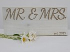 2025 Mr and Mrs Wedding Sign Engraved Rustic Wooden - White Washed - 12 X 5 inch