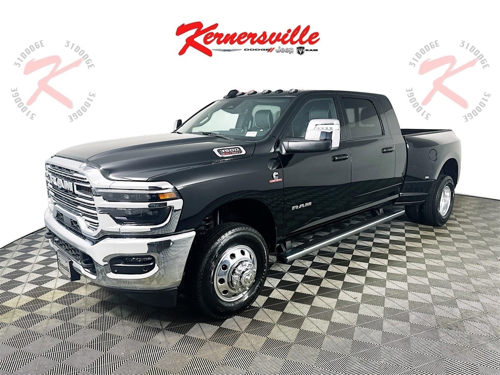 MORE ABOUT THIS 2025 Ram 3500 Laramie 14in Dually Truck Mega Cab LEATHER HEATED SEATS! NAVIGATION! BACKUP CAMERA! This 2025 RAM 3500 LARAMIE MEGA CAB 4X4 TRUCK includes the following features: Package: 24H , Exterior Color: Diamond Black Crystal Pearl Coat Exterior Paint , Interior Color: Black Leather Trimmed Bucket Seats , Engine: 6.7L I6 Cummins HO Turbo Diesel Engine , Transmission: 8 Speed TorqueFlite HD AutomaticTransmission , Full Speed Forward Collision Warning Plus , Adaptive Cruise Control with Stop , ParkSense Front and Rear Park Assist System , ParkView Rear Back Up Camera , Blind Spot with Tag Trailer And Cross Path Detection , Sentry Key Theft Deterrent System , Uconnect 5 Nav with 12.0 Inch Touch Screen Display , Apple CarPlay , Google Android Auto , Heated Front Seats , Heated Steering Wheel , As well as the following options: Uconnect 5 Nav with 14.4 Inch Touch Screen Display , Dual Rear Wheels , and much more! Please check the window sticker for a complete list of equipment. Kernersville Chrysler Dodge Jeep Ram in Kernersville, NC is located in the heart of North Carolina between Charlotte, NC and Raleigh, NC. We specialize in NO hassle out of state purchases we process your taxes, tags and title work for the city and state where the vehicle will be registered. RETURN TO TOP