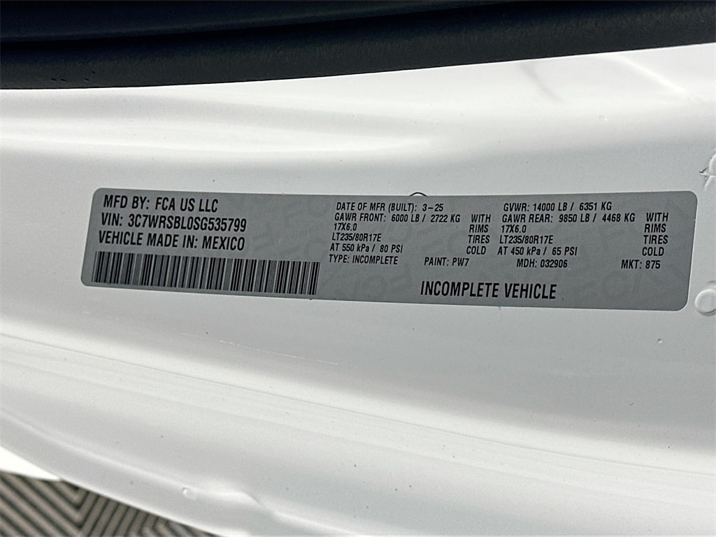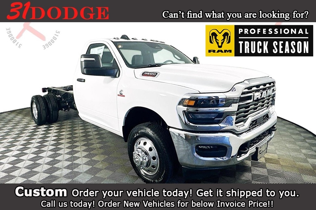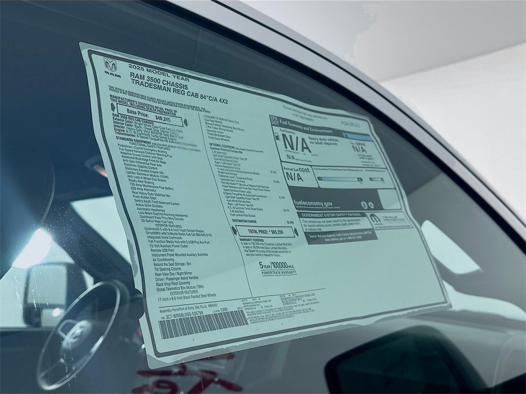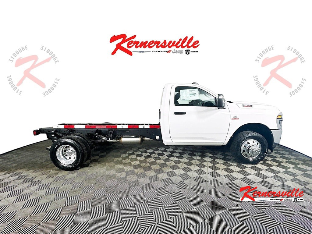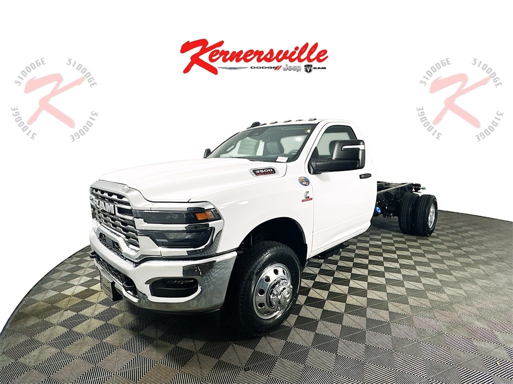 MORE ABOUT THIS 2025 Ram 3500 Chassis Tradesman 84CA Dually Truck Regular Cab DUALLY! DIESEL! This 2025 RAM 3500 CHASSIS TRADESMAN REG CAB 84'C/A 4X2 TRUCK includes the following features: Package: 25A , Exterior Color: Bright White Clear Coat Exterior Paint , Interior Color: Black / Diesel Gray Heavy Duty Vinyl 40/20/40 Split Bench Seat , Engine: 6.7L I6 Cummins Turbo Diesel Engine , Transmission: 8 Speed TorqueFlite HD AutomaticTransmission , Full Speed Forward Collision Warning Plus , Adaptive Cruise Control with Stop , Push Button Start , Sentry Key Theft Deterrent System , Uconnect 5 with 8.4 Inch Touch Screen Display , Integrated Voice Command , Dual Rear Wheels , Tinted Windshield Glass , Tinted Glass Windows , and much more! Please check the window sticker for a complete list of equipment. Kernersville Chrysler Dodge Jeep Ram in Kernersville, NC is located in the heart of North Carolina between Charlotte, NC and Raleigh, NC. We specialize in NO hassle out of state purchases we process your taxes, tags and title work for the city and state where the vehicle will be registered. RETURN TO TOP