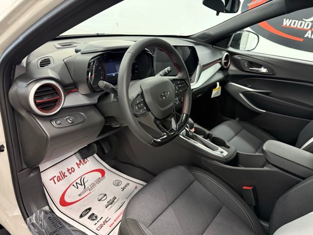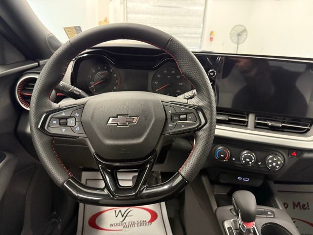 2-Way Adjustable Front Head Restraints, 3.50 Final Drive Axle Ratio, 4 Speakers, 4-Speaker Audio System Feature, 4-Way Manual Front Passenger Seat Adjuster, 4-Wheel Disc Brakes, 6-Way Manual Driver Seat Adjuster, ABS brakes, Air Conditioning, Alloy wheels, AM/FM radio: SiriusXM, Auto High-beam Headlights, Brake assist, Bumpers: body-color, Cloth Seat Trim, Compass, Delay-off headlights, Driver Confidence Package, Driver door bin, Driver vanity mirror, Dual front impact airbags, Dual front side impact airbags, Electronic Stability Control, Emergency communication system: OnStar One Essentials, Exterior Parking Camera Rear, Front and Rear Jet Black All-Weather Floor Liners, Front anti-roll bar, Front Bucket Seats, Front Center Armrest, Front reading lights, Front wheel independent suspension, Fully automatic headlights, Heated door mirrors, Heated Driver and Front Passenger Seats, Heated front seats, Heated steering wheel, Illuminated entry, Interior Protection Package, Jet Black Cargo Liner, Lane Change Alert with Side Blind Zone Alert, Leather steering wheel, License Plate Front Mounting Package, Low tire pressure warning, Occupant sensing airbag, Outside temperature display, Overhead airbag, Overhead console, Panic alarm, Passenger door bin, Passenger vanity mirror, Power door mirrors, Power steering, Power windows, Preferred Equipment Group 1RS, Premium audio system: Chevrolet Infotainment 3, Radio data system, Radio: Chevrolet Infotainment 3 System with AM/FM, Rear Cross Traffic Alert, Rear Park Assist, Rear window defroster, Rear window wiper, Remote keyless entry, Security system, SiriusXM Trial Subscription, Speed control, Split folding rear seat, Spoiler, Sport steering wheel, Steering wheel mounted audio controls, Tachometer, Telescoping steering wheel, Tilt steering wheel, Traction control, Trip computer, Variably intermittent wipers, Wheels: 18" Black-Painted Machined Aluminum, Wireless Apple CarPlay/Wireless Android Auto. 2026 Chevrolet Trax 1RS 1RS SHOP FROM HOME PURCHASE YOUR VEHICLE 100% FROM HOME - FREE DELIVERY UP TO 300 MILES - CALL US FOR DETAILS
