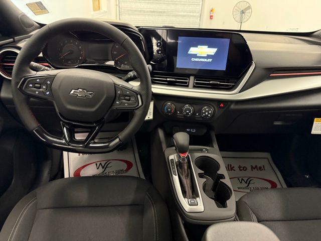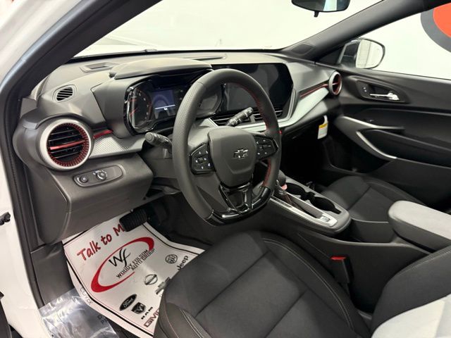 2-Way Adjustable Front Head Restraints, 3.50 Final Drive Axle Ratio, 4 Speakers, 4-Speaker Audio System Feature, 4-Way Manual Front Passenger Seat Adjuster, 4-Wheel Disc Brakes, 6-Way Manual Driver Seat Adjuster, ABS brakes, Air Conditioning, Alloy wheels, AM/FM radio: SiriusXM, Auto High-beam Headlights, Brake assist, Bumpers: body-color, Cloth Seat Trim, Compass, Delay-off headlights, Driver Confidence Package, Driver door bin, Driver vanity mirror, Dual front impact airbags, Dual front side impact airbags, Electronic Stability Control, Emergency communication system: OnStar One Essentials, Exterior Parking Camera Rear, Front and Rear Jet Black All-Weather Floor Liners, Front anti-roll bar, Front Bucket Seats, Front Center Armrest, Front reading lights, Front wheel independent suspension, Fully automatic headlights, Heated door mirrors, Heated Driver and Front Passenger Seats, Heated front seats, Heated steering wheel, Illuminated entry, Jet Black Cargo Liner, Lane Change Alert with Side Blind Zone Alert, Leather steering wheel, License Plate Front Mounting Package, Low tire pressure warning, Occupant sensing airbag, Outside temperature display, Overhead airbag, Overhead console, Panic alarm, Passenger door bin, Passenger vanity mirror, Power door mirrors, Power Sliding Glass Sunroof with Manual Shade, Power steering, Power windows, Preferred Equipment Group 1RS, Premium audio system: Chevrolet Infotainment 3, Radio data system, Radio: Chevrolet Infotainment 3 System with AM/FM, Rear Cross Traffic Alert, Rear Park Assist, Rear window defroster, Rear window wiper, Remote keyless entry, Security system, SiriusXM Trial Subscription, Speed control, Split folding rear seat, Spoiler, Sport steering wheel, Steering wheel mounted audio controls, Sunroof Package, Tachometer, Telescoping steering wheel, Tilt steering wheel, Traction control, Trip computer, Variably intermittent wipers, Wheels: 18" Black-Painted Machined Aluminum, Wireless Apple CarPlay/Wireless Android Auto. 2026 Chevrolet Trax 1RS 1RS SHOP FROM HOME PURCHASE YOUR VEHICLE 100% FROM HOME - FREE DELIVERY UP TO 300 MILES - CALL US FOR DETAILS