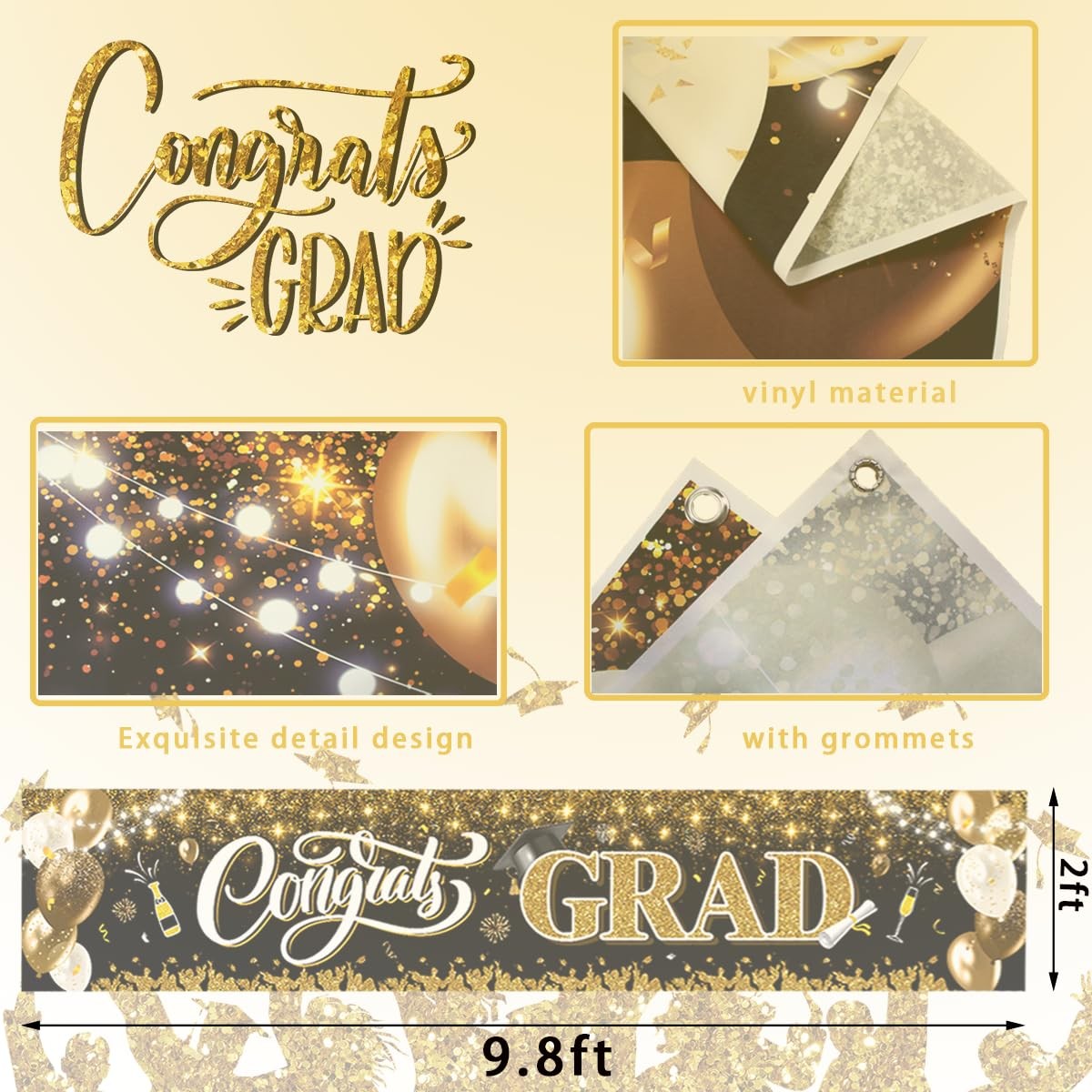 Class of 2026 Congrats Grad Banner Black Gold Large Yard Sign Party Decoration