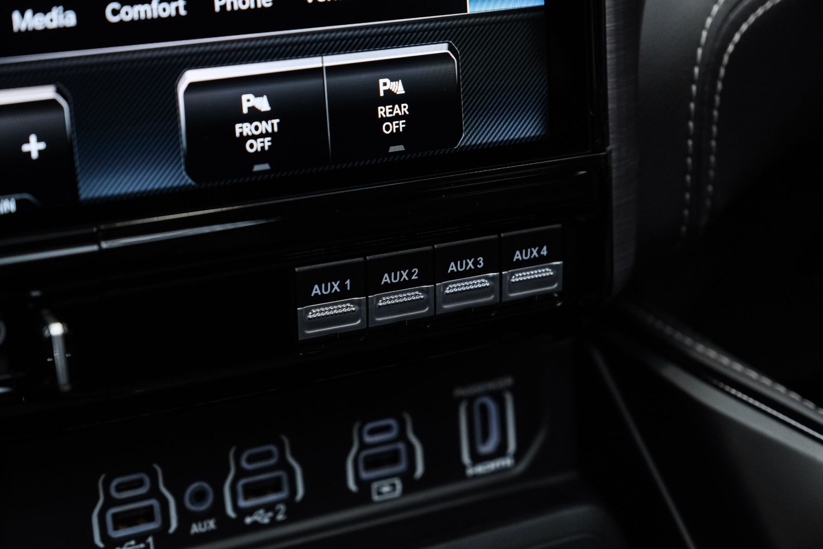 - Armrests: rear center folding with storage