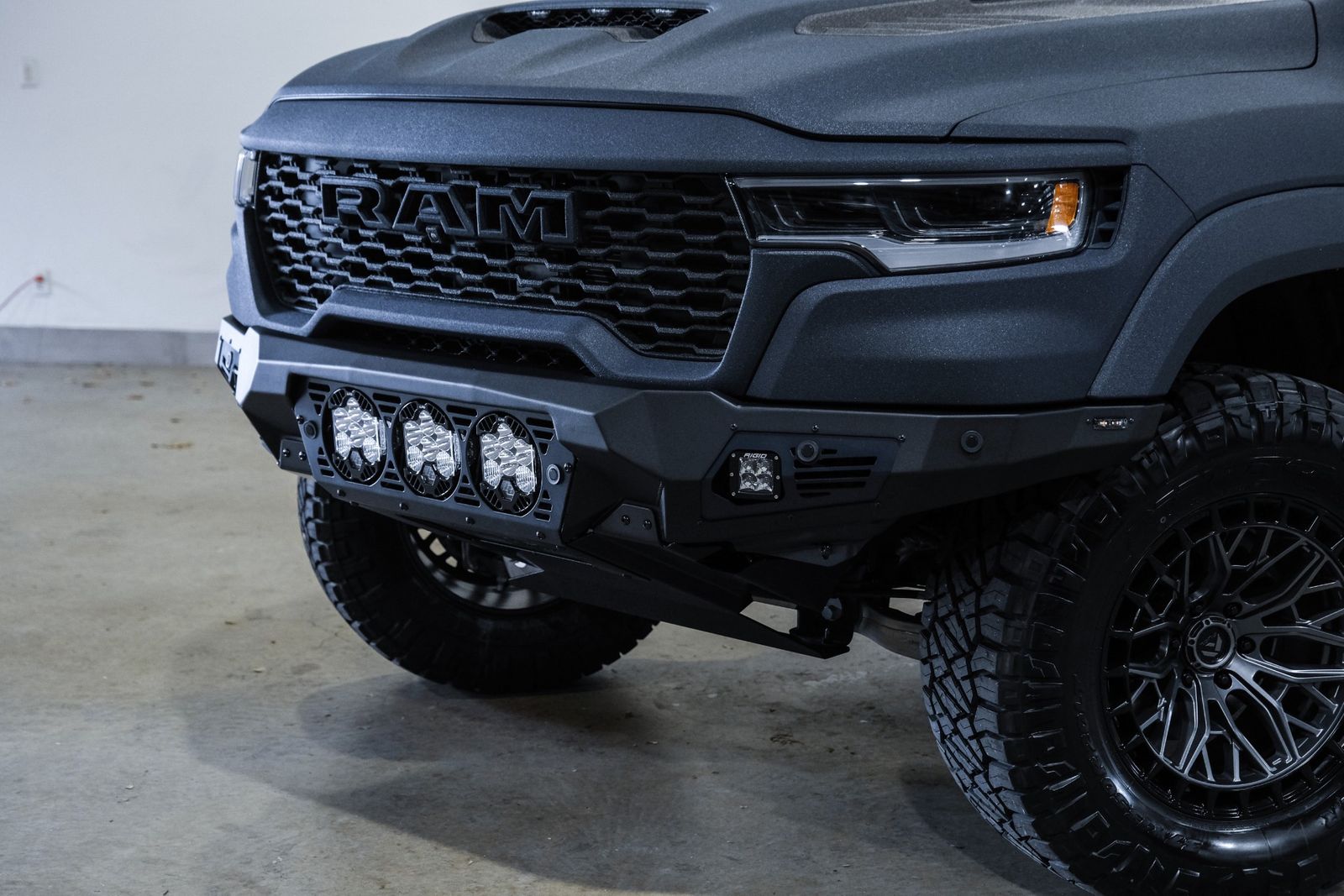 * ADDICTIVE DESERT DESIGNS BOMBER FRONT BUMPER WITH 3 BAJA DESIGNS LP6 ROUND LED LIGHTS & 2 RIGID SIDE LED LIGHTS