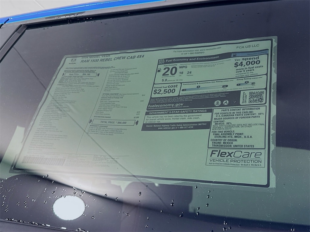 MORE ABOUT THIS 2026 Ram 1500 Rebel 12in Truck Crew Cab HEATED SEATS! NAVIGATION! REMOTE START! BACKUP CAMERA! This 2026 RAM 1500 REBEL CREW CAB 4X4 TRUCK includes the following features: Package: 21W , Exterior Color: Hydro Blue Pearl Coat Exterior Paint , Interior Color: Black / Red Cloth / Vinyl Bucket Seats , Engine: 3.0L I6 Hurricane SO Twin Turbo with Stop/Start , Transmission: 8 Speed Automatic 8HP75 Transmission , Active Lane Management System , Active Noise Control System , Adaptive Cruise Control with Stop and Go , Advanced Brake Assist , Blind Spot and Cross Path Detection , ParkSense Front and Rear Park Assist , Parkview Rear Back Up Camera , Push Button Start , Remote Start System , Heated Front Seats , Uconnect 5 Nav with 12.0 Inch Touch Screen Display , Heated Steering Wheel , 2nd Row In Floor Storage Bins , Tow Hooks , As well as the following options: Wireless Charging Pad , Trailer Brake Controller , and much more! Please check the window sticker for a complete list of equipment. Kernersville Chrysler Dodge Jeep Ram in Kernersville, NC is located in the heart of North Carolina between Charlotte, NC and Raleigh, NC. We specialize in NO hassle out of state purchases we process your taxes, tags and title work for the city and state where the vehicle will be registered. RETURN TO TOP
