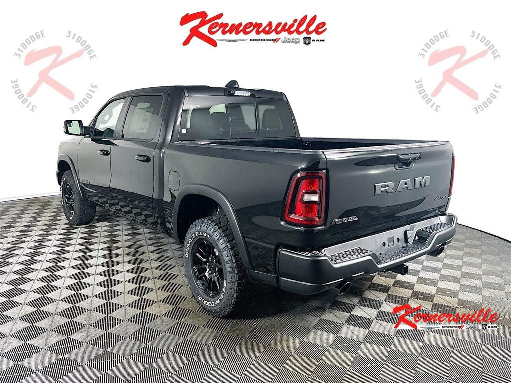 MORE ABOUT THIS 2026 Ram 1500 Rebel 14in Truck Crew Cab LEATHER HEATED SEATS! SUNROOF! NAVIGATION! REMOTE START! BACKUP CAMERA! This 2026 RAM 1500 REBEL CREW CAB 4X4 TRUCK includes the following features: Package: 21W , Exterior Color: Diamond Black Crystal Pearl Coat Exterior Paint , Interior Color: Black Luxury Leather Trimmed Bucket Seats , Engine: 3.0L I6 Hurricane SO Twin Turbo with Stop/Start , Transmission: 8 Speed Automatic 8HP75 Transmission , Full Speed Forward Collision Warning Plus , Active Noise Control System , Adaptive Cruise Control with Stop and Go , Advanced Brake Assist , Blind Spot and Cross Path Detection , ParkSense Front and Rear Park Assist , ParkView Rear Back Up Camera , Push Button Start , Remote Start System , Heated Front Seats , Uconnect 5 Nav with 12.0 Inch Touch Screen Display , Heated Steering Wheel , 2nd Row In Floor Storage Bins , As well as the following options: Head Up Display , Heated Second Row Seats , Uconnect 5 Nav with 14.4 Inch Touch Screen Display , Power Tailgate , Dual Wireless Charging Pad , Dual Pane Panoramic Sunroof , Trailer Brake Controller , and much more! Please check the window sticker for a complete list of equipment. Kernersville Chrysler Dodge Jeep Ram in Kernersville, NC is located in the heart of North Carolina between Charlotte, NC and Raleigh, NC. We specialize in NO hassle out of state purchases we process your taxes, tags and title work for the city and state where the vehicle will be registered. RETURN TO TOP