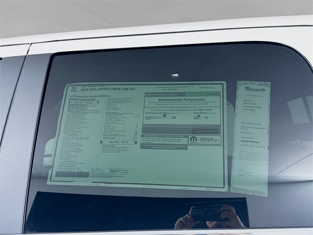 MORE ABOUT THIS 2026 Ram 2500 Limited 14in Truck Crew Cab LEATHER HEATED SEATS! NAVIGATION! REMOTE START! BACKUP CAMERA! This 2026 RAM 2500 LIMITED CREW CAB 4X4 TRUCK includes the following features: Package: 2UM , Exterior Color: Bright White Clear Coat Exterior Paint , Interior Color: Black Ultra Premium Leather Seats , Engine: 6.4L V8 HEMI HD Engine , Transmission: 8 Speed Automatic 8HP75 LCV Transmission , Full Speed Forward Collision Warning Plus , Parkview Rear Back Up Camera , ParkSense Front and Rear Park Assist System , Blind Spot with Tag Trailer And Cross Path Detection , Remote Start System , Sentry Key Theft Deterrent System , Uconnect 5 Nav with 14.4 Inch Touch Screen Display , Apple CarPlay , Google Android Auto , Dual Wireless Charging Pad , Heated Front Seats , Ventilated Front Seats , Heated Second Row Seats , Heated Steering Wheel , As well as the following options: Center Stop Lamp with Cargo View Camera , Surround View Camera System , Trailer Reverse Guidance , and much more! Please check the window sticker for a complete list of equipment. Kernersville Chrysler Dodge Jeep Ram in Kernersville, NC is located in the heart of North Carolina between Charlotte, NC and Raleigh, NC. We specialize in NO hassle out of state purchases we process your taxes, tags and title work for the city and state where the vehicle will be registered. RETURN TO TOP