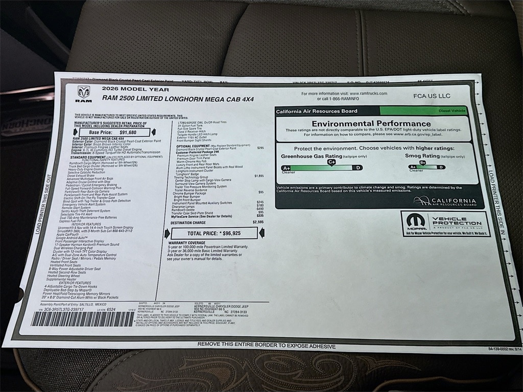 MORE ABOUT THIS 2026 Ram 2500 Limited Longhorn 14in Truck Mega Cab Here it is! Hurry and take advantage now! This vehicle won't be on the lot long! Having been designed with performance, style and comfort in mind, this vehicle delivers a satisfying driving experience for a diverse range of expectations! A turbocharger is also included as an economical means of increasing performance. This model accommodates 5 passengers comfortably, and provides features such as: heated and ventilated seats, a trailer hitch, and leather upholstery. It features four-wheel drive capabilities, a durable automatic transmission, and a refined 6 cylinder engine. Our knowledgeable sales staff is available to answer any questions that you might have. They'll work with you to find the right vehicle at a price you can afford. We are here to help you.