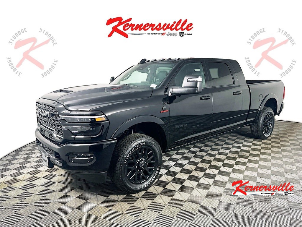 MORE ABOUT THIS 2026 Ram 2500 Limited Night 14in Truck Mega Cab LEATHER HEATED SEATS! SUNROOF! NAVIGATION! REMOTE START! BACKUP CAMERA! This 2026 RAM 2500 LIMITED NIGHT MEGA CAB 4X4 TRUCK includes the following features: Package: 24M , Exterior Color: Diamond Black Crystal Pearl Coat Exterior Paint , Interior Color: Black Ultra Premium Leather Seats , Engine: 6.7L I6 Cummins HO Turbo Diesel Engine , Transmission: 8 Speed TorqueFlite HD Automatic Transmission , Adaptive Cruise Control with Stop , Full Speed Forward Collision Warning Plus , ParkView Rear Back Up Camera , ParkSense Front and Rear Park Assist System , Blind Spot with Tag Trailer And Cross Path Detection , Remote Start System , Sentry Key Theft Deterrent System , Uconnect 5 Nav with 14.4 Inch Touch Screen Display , Apple CarPlay , Google Android Auto , Heated Front Seats , Ventilated Front Seats , Heated Second Row Seats , Heated Steering Wheel , As well as the following options: Traffic Sign Recognition , Drowsy Driver Detection , Active Lane Management System , Center Stop Lamp with Cargo View Camera , Power Deployable Running Boards , Adaptive Steering System , Surround View Camera System , Spray In Bedliner by Mopar , Trailer Reverse Guidance , Power Sunroof , and much more! Please check the window sticker for a complete list of equipment. Kernersville Chrysler Dodge Jeep Ram in Kernersville, NC is located in the heart of North Carolina between Charlotte, NC and Raleigh, NC. We specialize in NO hassle out of state purchases we process your taxes, tags and title work for the city and state where the vehicle will be registered. RETURN TO TOP