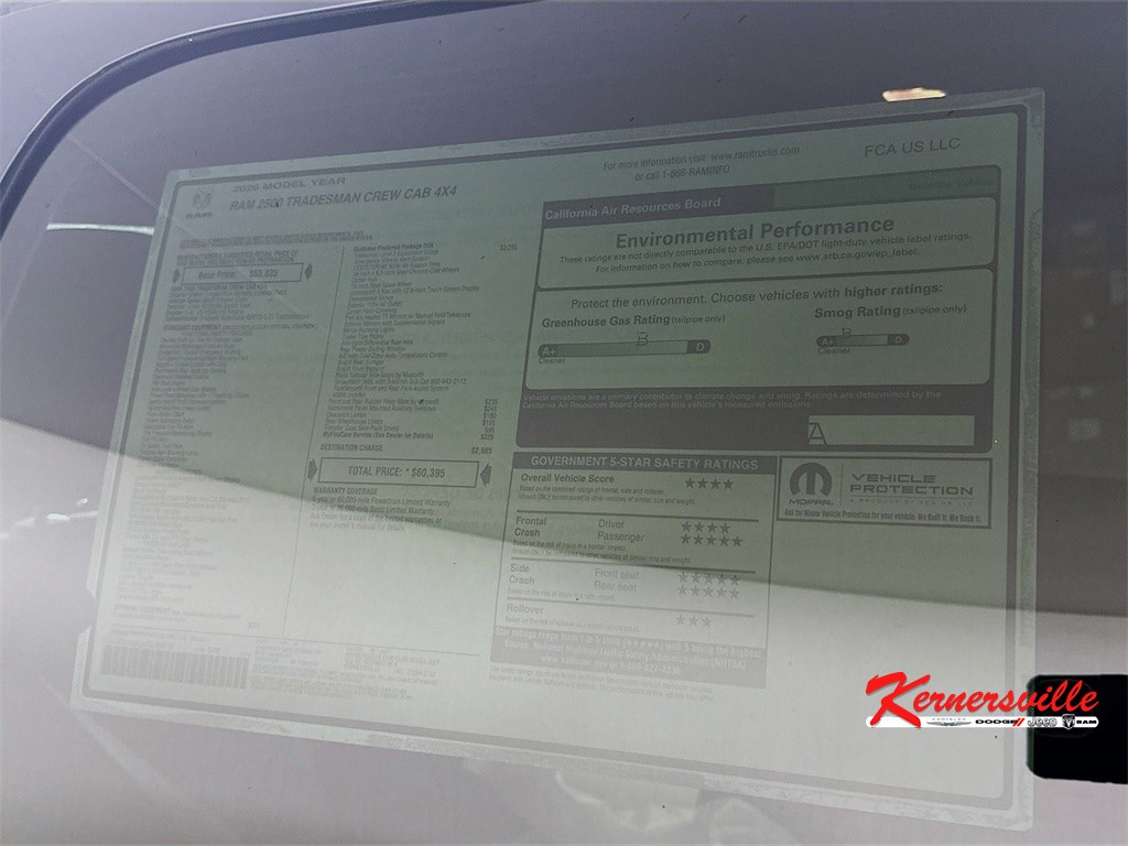 When calling or emailing, please reference stock number 260855.On new vehicles we offer free shipping up to 250 miles and competitive rates on shipping outside that range with our professional in-house shippers! Request a shipping quote. Alternatively, we also offer a $500 credit good towards your preferred shipper or towards one airfare ticket to our dealership so you can pick up your vehicle in person and drive it home! Read more on this below.We stock over 1500 vehicles in inventory and can find the right vehicle at the right price for you! Our in-house shippers offer highly competitive shipping rates to all four corners of the US.MORE ABOUT THIS 2026 Ram 2500 Tradesman 12in Truck Crew CabNAVIGATION! BACKUP CAMERA!