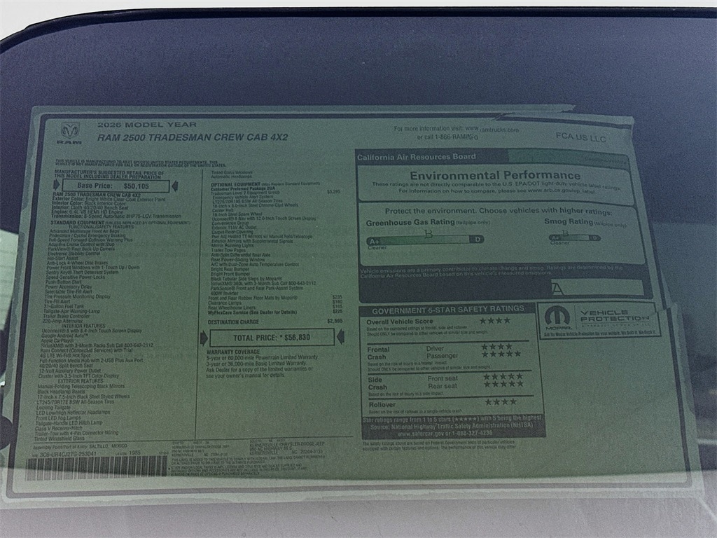 MORE ABOUT THIS 2026 Ram 2500 Tradesman 12in Truck Crew Cab You won't want to miss this excellent value! It offers the latest in technological innovation and style. Top features include front fog lights, adjustable headrests in all seating positions, a front bench seat, and power windows. Our sales staff will help you find the vehicle that you've been searching for. We'd be happy to answer any questions that you may have. Call now to schedule a test drive.