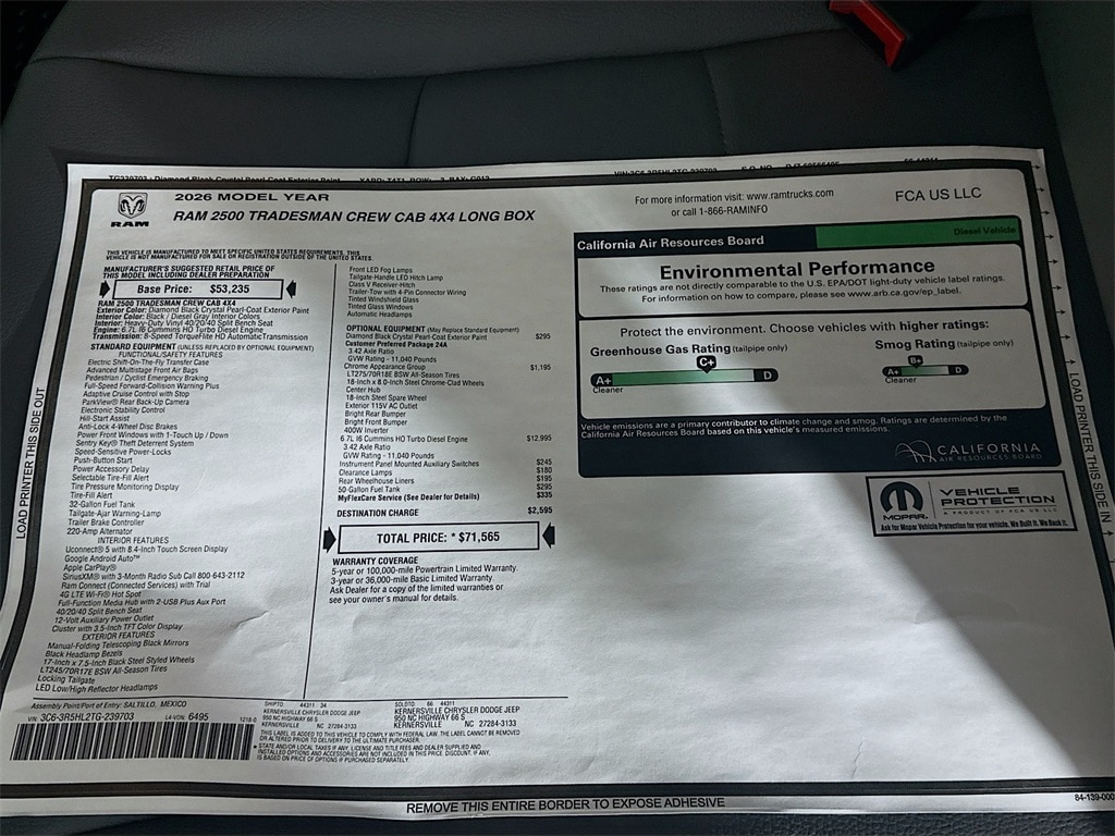 MORE ABOUT THIS 2026 Ram 2500 Tradesman Truck Crew Cab LB Looking for a new car at an affordable price? You won't want to miss this excellent value! You'll appreciate its safety and convenience features! Top features include cruise control, a rear step bumper, a trailer hitch, and much more. Our knowledgeable sales staff is available to answer any questions that you might have. We are here to help you.