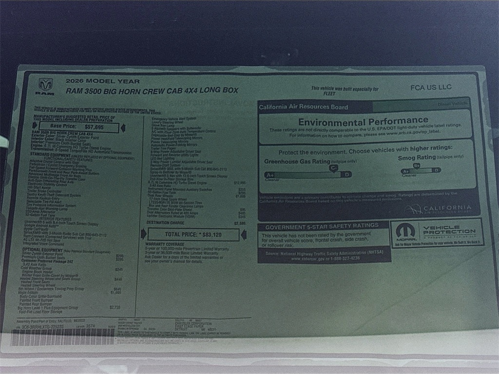 MORE ABOUT THIS 2026 Ram 3500 Big Horn 12in Dually Truck Crew Cab LB Check out this 2026! This truck stands out from the crowd, boasting a diverse range of features and remarkable value! Top features include front fog lights, tilt steering wheel, an overhead console, and power windows. We have the vehicle you've been searching for at a price you can afford. Please don't hesitate to give us a call.