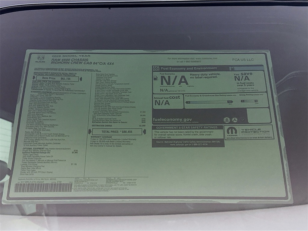 MORE ABOUT THIS 2026 Ram 4500 Chassis Big Horn 84CA Dually Truck Crew Cab You won't want to miss this excellent value! A comfortable ride in a spacious vehicle! The engine breathes better thanks to a turbocharger, improving both performance and economy. All of the following features are included: tilt steering wheel, skid plates, and power windows. Our knowledgeable sales staff is available to answer any questions that you might have. They'll work with you to find the right vehicle at a price you can afford. Stop in and take a test drive!