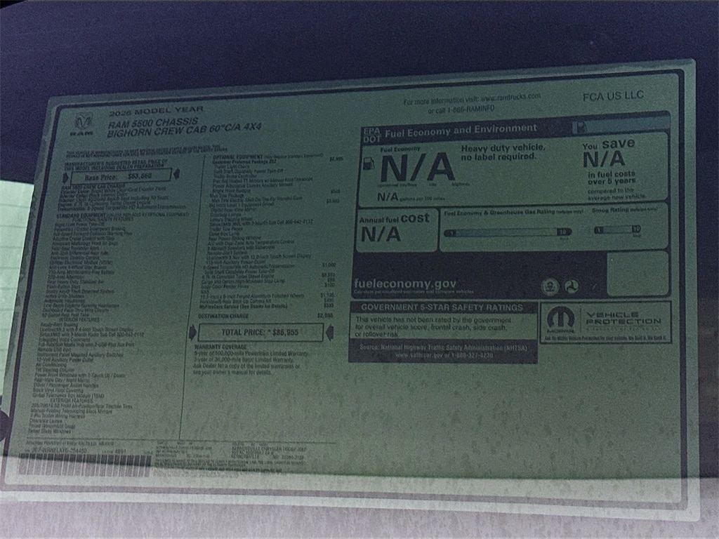 When calling or emailing, please reference stock number 260886.On new vehicles we offer free shipping up to 250 miles and competitive rates on shipping outside that range with our professional in-house shippers! Request a shipping quote. Alternatively, we also offer a $500 credit good towards your preferred shipper or towards one airfare ticket to our dealership so you can pick up your vehicle in person and drive it home! Read more on this below.We stock over 1500 vehicles in inventory and can find the right vehicle at the right price for you! Our in-house shippers offer highly competitive shipping rates to all four corners of the US.MORE ABOUT THIS 2026 Ram 5500 Chassis Big Horn 60CA Dually Truck Crew CabDIESEL! NAVIGATION! REMOTE START!