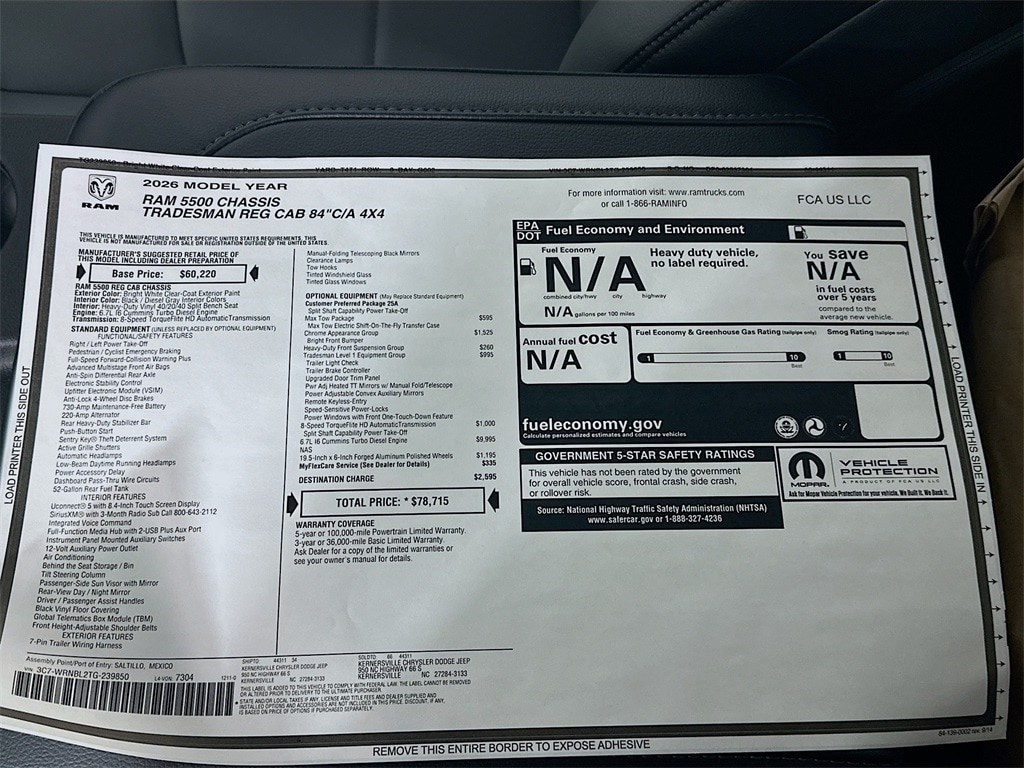 MORE ABOUT THIS 2026 Ram 5500 Chassis Tradesman 84CA Dually Truck Regular Cab Check out this 2026! This vehicle stands out from the competition! A turbocharger further enhances performance, while also preserving fuel economy. Top features include front fog lights, a tachometer, variably intermittent wipers, and air conditioning. Our sales staff will help you find the vehicle that you've been searching for. We'd be happy to answer any questions that you may have. Come on in and take a test drive!