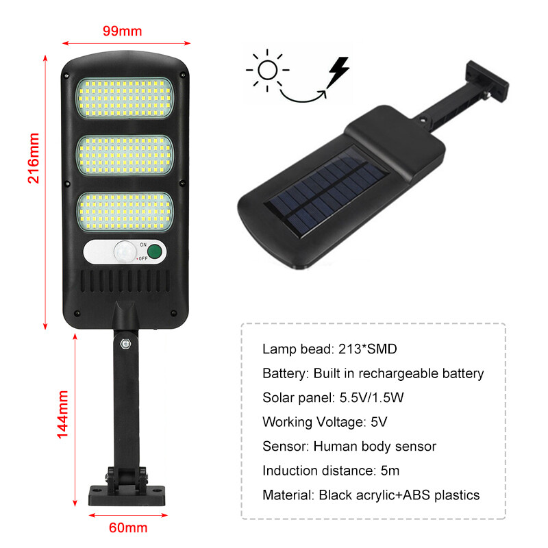 1. 213 LEDs Super Bright Solar Street Light: The enhanced outdoor solar sports induction light have 213 LEDs beads