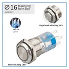 16mm 2NO 2NC Ring LED illuminated Stainless steel Anti-vandal Push Button switch