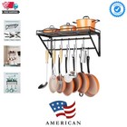 23 Inch Wall Mounted Pot Rack Storage Shelf With 2 Tier Hanging Rails 12 S Hooks