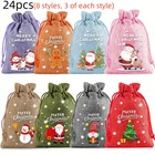 24 Pcs Christmas Burlap Gift Bags, Small Treat Goody Bags with Drawstrings for C
