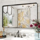 Brushed Nickel Bathroom Mirror, 24x32 Inch Beveled Framed Bathroom Mirror Ant...