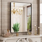 Black Bathroom Mirror 24x32 inch, Rounded Rectangle Metal Framed Vanity Wall ...
