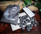 25 RUNE STONES & BAG Cat and Moon Wicca Pagan Witchcraft Divination Faux Leather