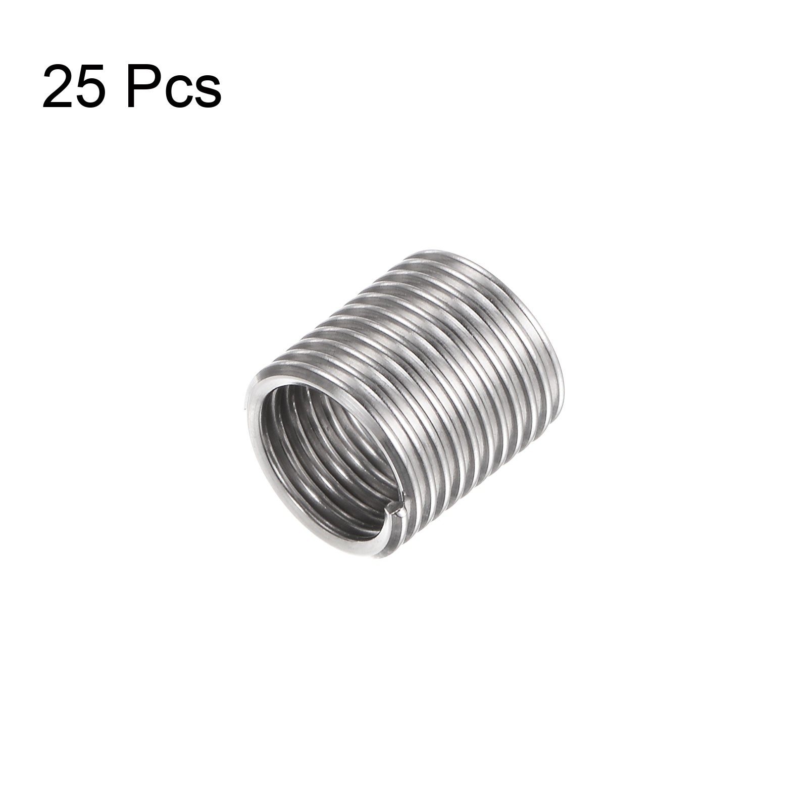 Thread Size: 1/4-28 UNFEffective Length (after Installation): 2.0D = 12.7mm / 0.5"Free State Length (before Installation): 9mm / 0.35"Free State Outer Diameter (before Installation): 7.8mm / 0.31"Type: HelicalMaterial: 304 Stainless Steel25pcs x Threaded InsertsDescriptions:304 stainless steel has good corrosion resistance, rust prevention, high hardness, and excellent oxidation resistance. It is austenitic stainless steel, which is non-magnetic or slightly magnetic. With self-tapping sleeves, the same screw can be used continuously.Features a certain of elastic, and provides an even load on the thread. Wire thread inserts have self-tapping capability without pre-tapping the base metal. Large contact surface with finished products, strong tensile force. Strong resistance to vibration, no deformation.Greatly improve the strength and wear resistance of threaded connections, prevent thread loosening and slippage, and repair damaged internal threaded holes. Mainly used for various low-strength metal and non-metal materials, such as aluminum, magnesium, cast iron, plastic, rubber, MDF, ceramics, fiberglass, wood.When the installation amount is small, take the corresponding bolts + nuts, fix the thread insert on the screw and fix it with the same type of nut to make the three in one. Use a wrench to screw the threaded insert into the bottom hole and remove the screw.Drill holes with the appropriate size drill bit, then tap with the same size tap as the bolt. Put the screw sleeve on the installation tool and adjust the height of the pipe position. Gently screw the sleeve into the hole until the end of the sleeve is between 1/2 and 1/4 of the plane of the hole. Twist the crossed wires with the break tool instead of the installation tool.