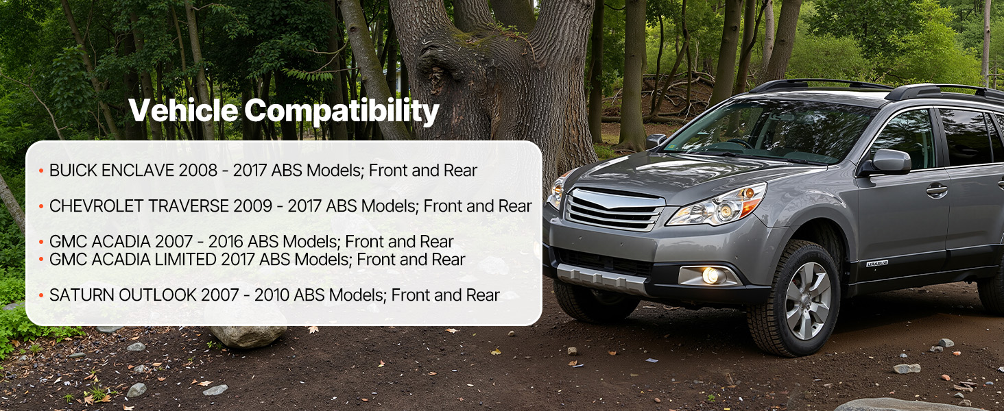 - Compatibility: This wheel hub assembly is designed to fit select models, including 2016-2017 Buick Enclave, Chevrolet Traverse, and GMC Acadia. Reminder: Verify the compatibility of your vehicle using the fitment chart provided on the product page.