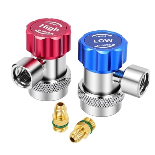 R134A ADAPTER COMPATIBILITY: Our R134a adapter fittings seamlessly connect to all R134a service ports on cars, trucks, and SUVs. This essential kit includes dedicated high & low-pressure HVAC quick connect fittings for complete air conditioning systems service